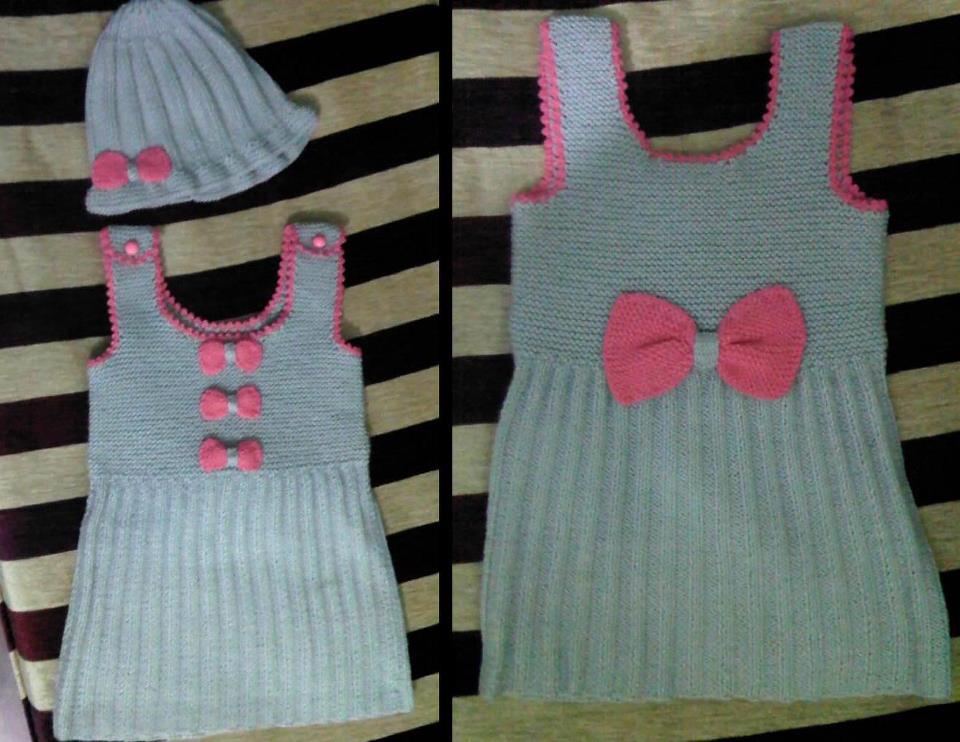 Örgü elbisemiz şiş ile örülmüş olan bir elbise modelidir.Elbisemiz lastik örülerek işlenmeye başlamış bir elbise modelidir.Bel kısmına kadar lastik bel kısmından sonra haroşe işlenilerek örülmüş bir elbise modelidir.Elbisemiz iki parça olarak işlenmiş bir elbise modelidir.Elbisemiz güzel ve sade kolay örgü olan çocuk elbise modelidir.Hadi bayanlar sizde çocuklarınıza böyle kolay bir elbise örneğini neden örmeyesiniz ki?