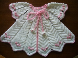 Beyaz örgü elbisemiz 2 adet örgü ipi ile örülmüştür.Örgümüz 10 numara örgü şişi ile örülmüştür.İll olarak 80 zincir çekilerek işlenmeye başlanmıştır.Çekile zincirin üzerine balık sırtı işlenerek arttırılarak işlenmiştir.Zincir ve dolgu yapılarak işlenmiştir.Süslemek amaçlı örgümüzün üzerine çiçek dikilmiştir.Çok kolay bir bebek elbise modelidir.İşleyecek olan bayanlarımızın ellerine sağlık diyorum:)
