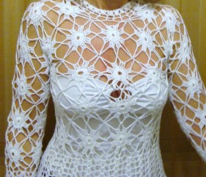 Beyaz örgü bayan kazağımıza 5 adet ip kullanılmıştır.Tığ ile örülmüştür.dolgu ve zincir tekniği kullanılmıştır.Motifler işlenip bittikten sonra motiflerden birleştirilerek balık sırtı örülmüştür.Kazağımız tamamlanarak giyim aşamasına getirlimiştir.Çok şık bir bayan kazağıdır.Değişik ve açık renklerde yapılırsada çok şık kazak olur.
