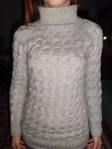 Örgü bayan kazağımız 5 adet örgü ipi kullanılmıştır.Kazağımız 3 numara örgü şişi ile örülmüştür.Kazağımız bir ön,bir arka,iki kol olarak örülmüştür.Kazağımıza bir ters,bir düz lastik başlanarak işlenmiştir.Beş santim lastik örüldükten sonra modelimize geçilip örülmüştür.Kazağımız reklam kol olarak kesilmiştir.Her sırada birer göz kesilmiştir.Soğuk kış günlerinde kıyafet üzerine çok şık bir bayan kazak modelidir.İsteğe bağlı olarak her renkten işleyebiliriz.