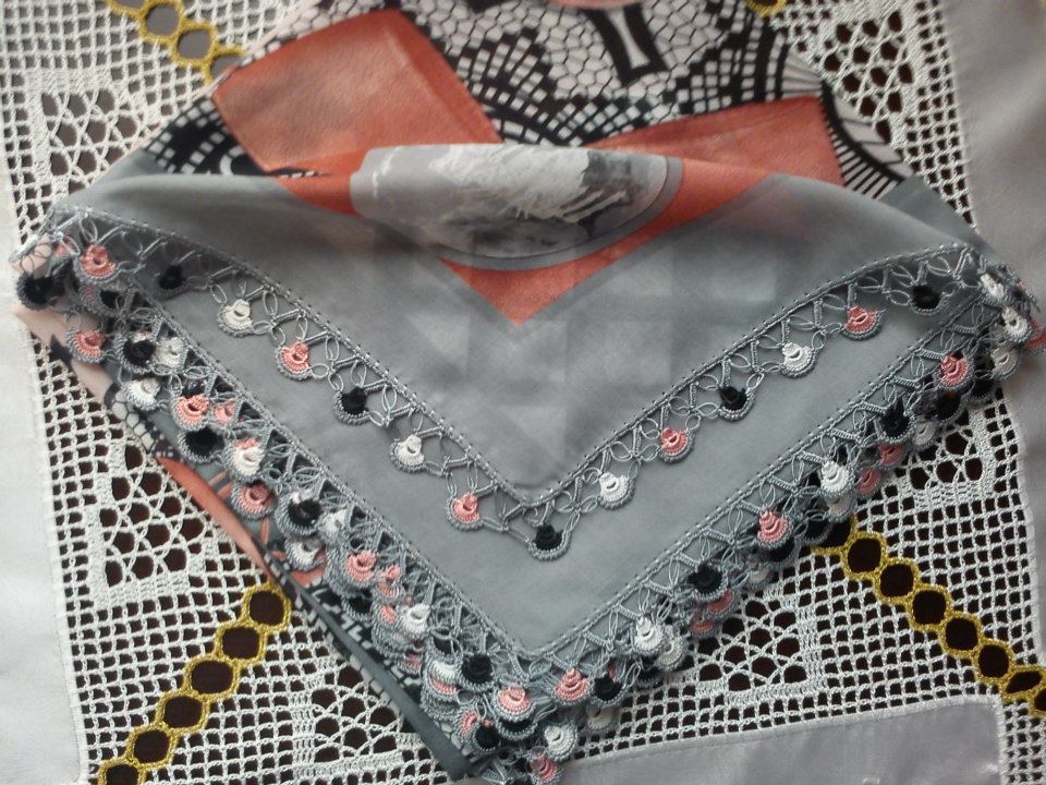 İlk olarak yazmamızın çevresini gri iple çevreliyoruz.Yazmamızın dört bir kenarına aynı işlemi uyguluyoruz.Daha sonra çevrelenen ipin üzerine yine gri iple modelimizi uygulayacağımız dal kısmı yapılmıştır.Daha sonra yapılan dal kısmına çiçekler yapılmıştır..Daha sonra gri iple çiçeklerimizin etrafı berdo ve sık iğne yapılarak çevrelenmiştir.Sıcak ütüyle ütüleyerek kullanım aşamasına getiriyoruz.