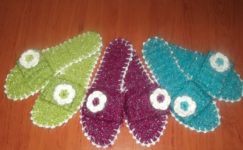 Örgü terlik modelimizin ilk olarak taban kısmından işlemeye başlıyoruz.Örgümüz tığ ile örüyoruz.İlk olarak zincir çekerek örmeye başlıyoruz daha sonra sık iğne ile örüp arttırarak işleme yapıyoruz.Taban kısmını ördükten sonra terliğimizin yüzey kısmını örüyoruz.Yüzey kısmınıda süsledikten sonra terliğimizi kulanım aşamasına getiriyoruz…